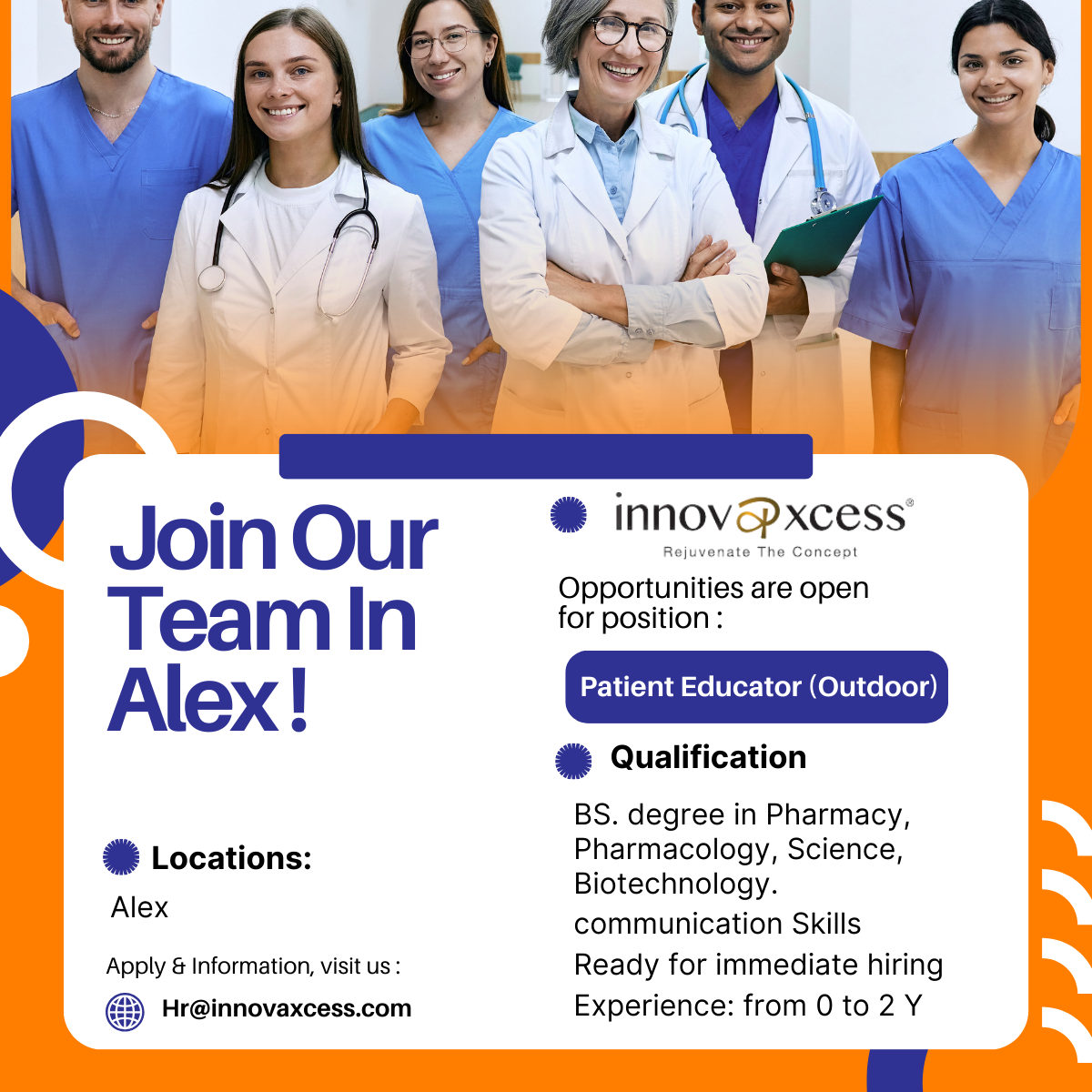 Join Innovaxcess in bringing vital patient support services directly to hospitals, clinics,Pharmacies and factories across Alexandria. As a Field Patient Educator, you’ll engage patients on-site, foster health literacy, and ensure seamless coordination among healthcare stakeholders.